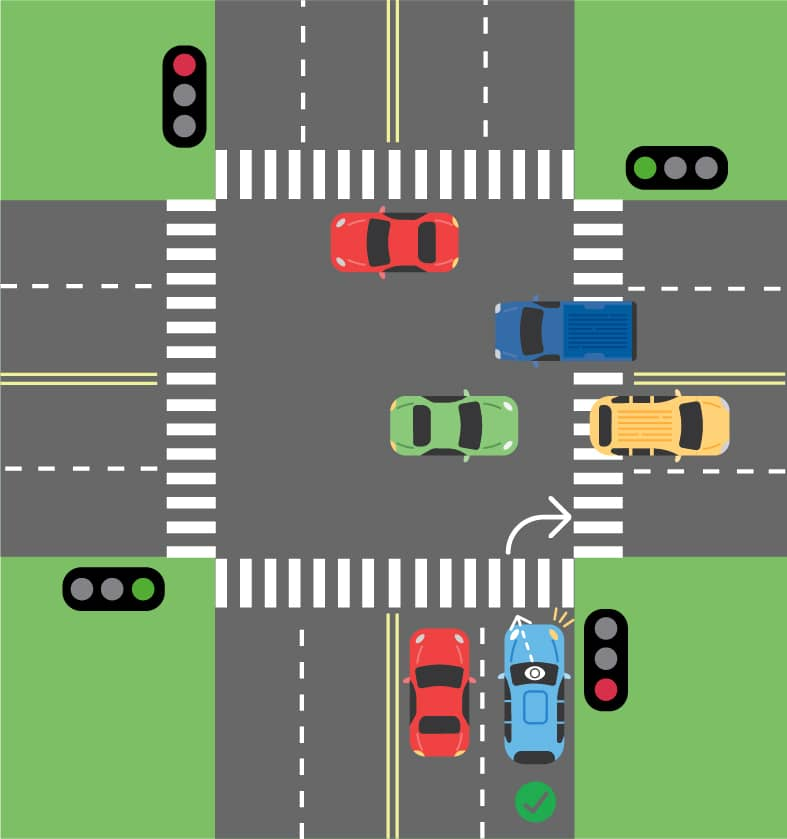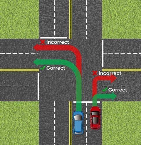 特に左折は、交通事故が最も起きやすい場所、前の車がどのレーンを走っているのかを意識しましょう