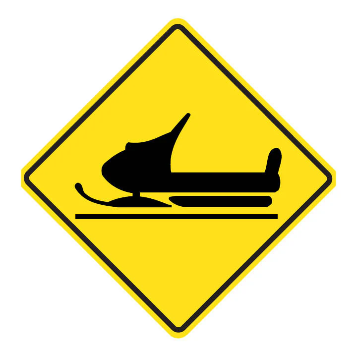 つまり、道路でスノーモービルが横断する可能性あるので運転には注意するようにとの喚起の標識です。