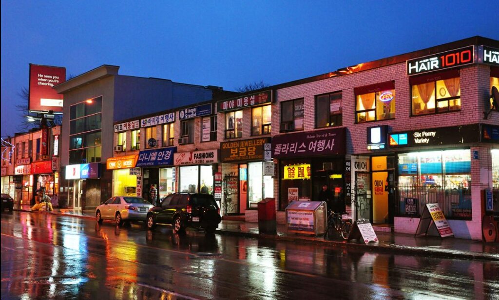 トロント西側沿線に広がる地区。たくさんの韓国料理やがのちを並べるBloorストリート沿い。